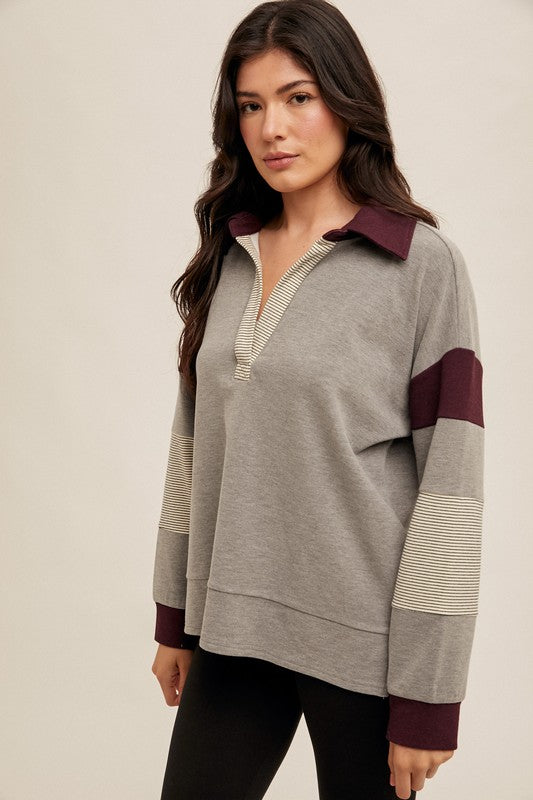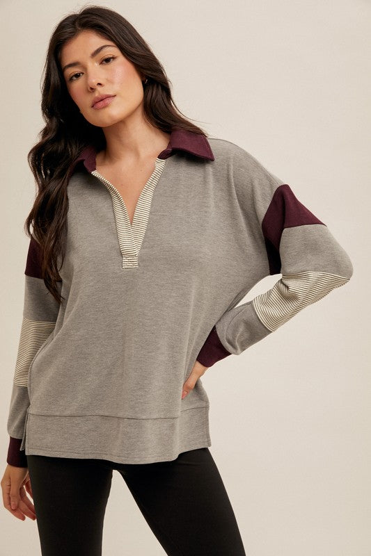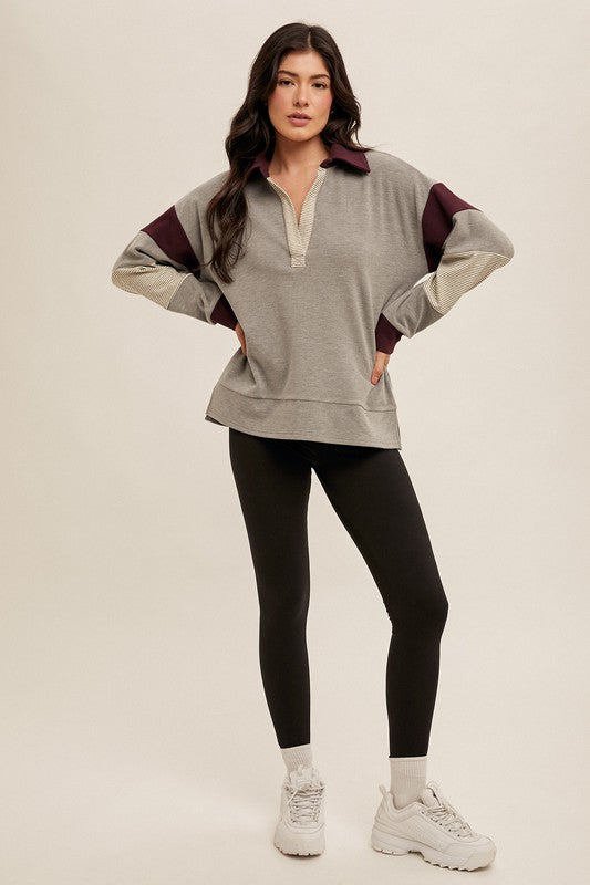 Amelia Brushed Colorblock Pullover Charcoal/Eggplant