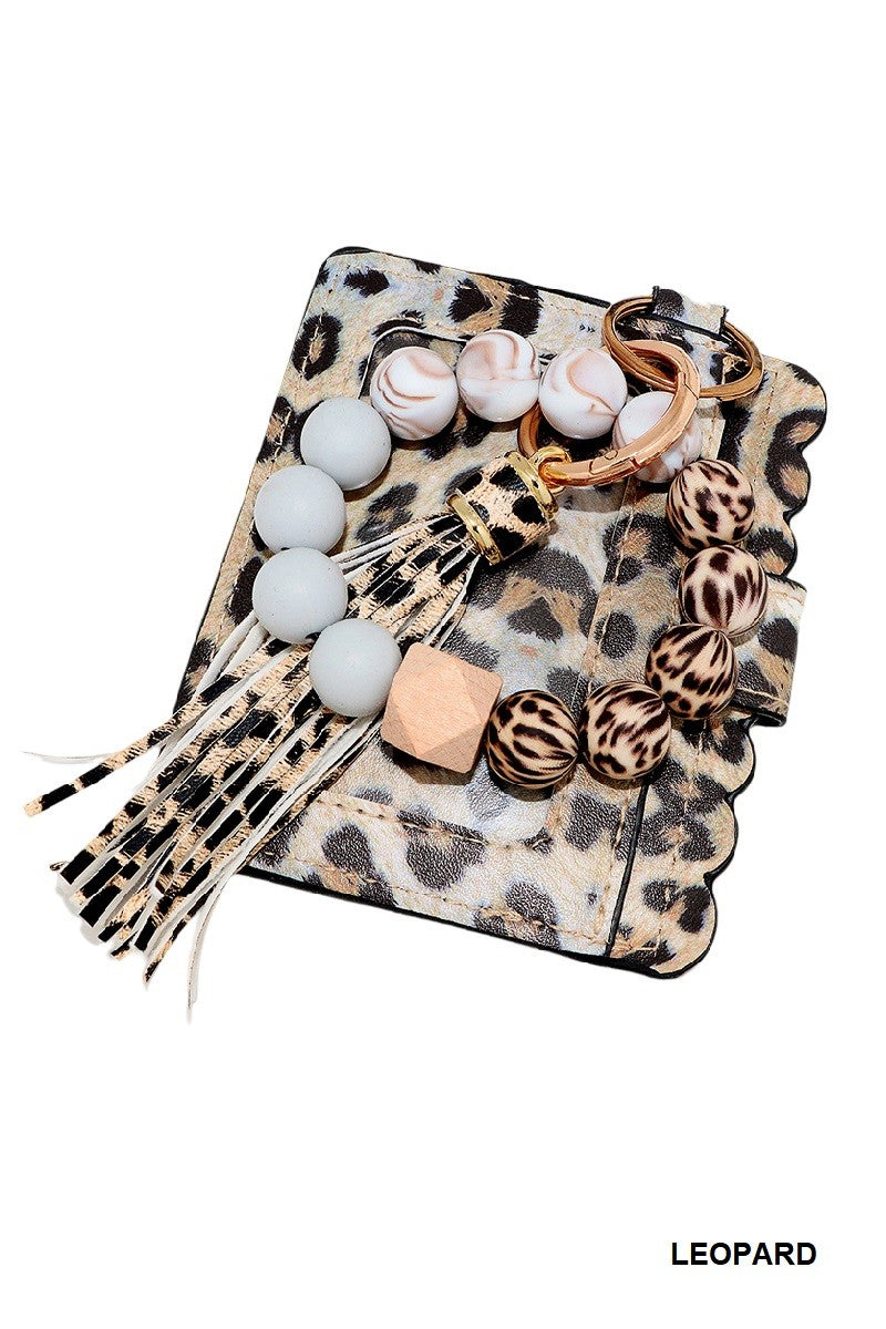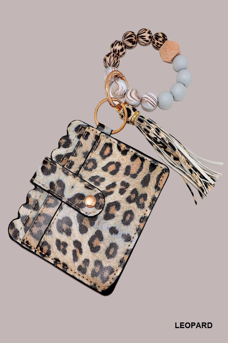 Brenda Beaded Bracelet Card Holder Keychain Wallet Leopard