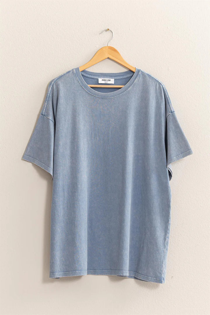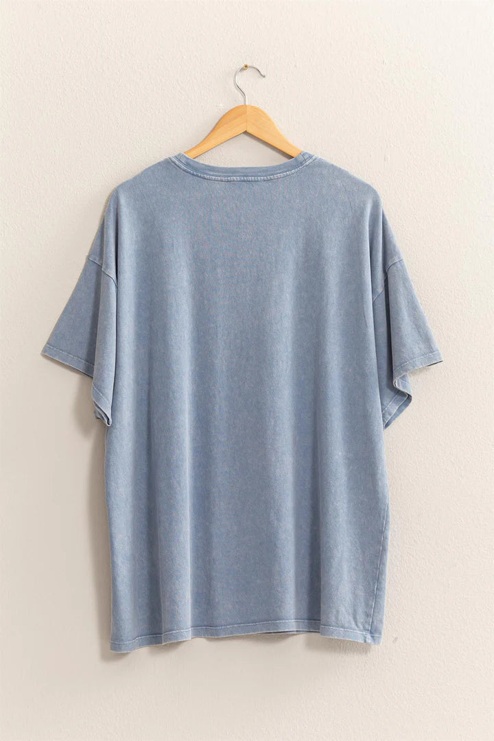 Dahlia Distressed Cotton Tee Shirt Gray Blue