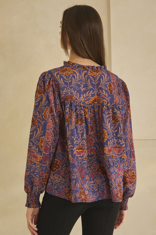 Francie Floral Blouse Navy