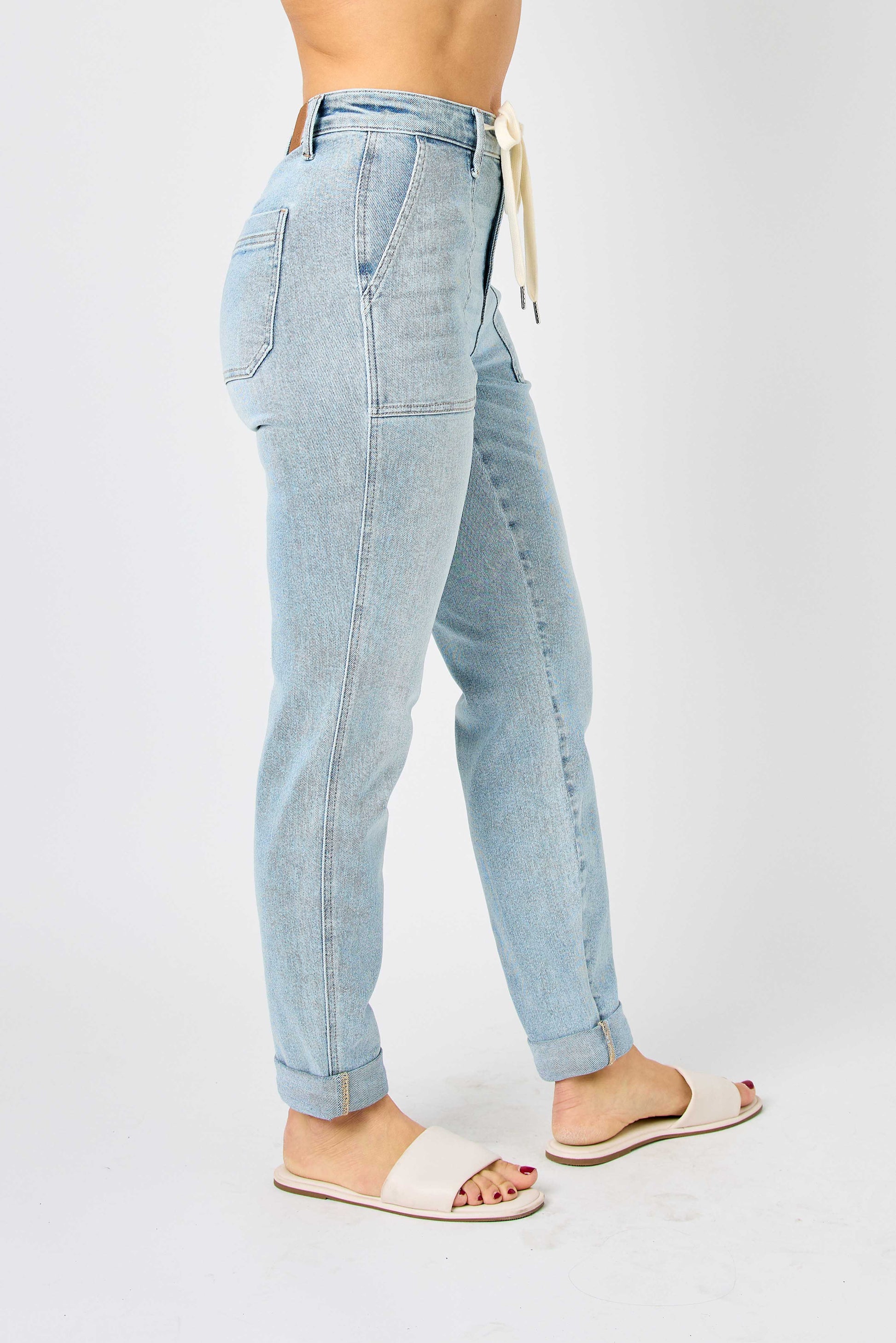 High waist joggers. Stretchy and comfortable, removable drawstring.