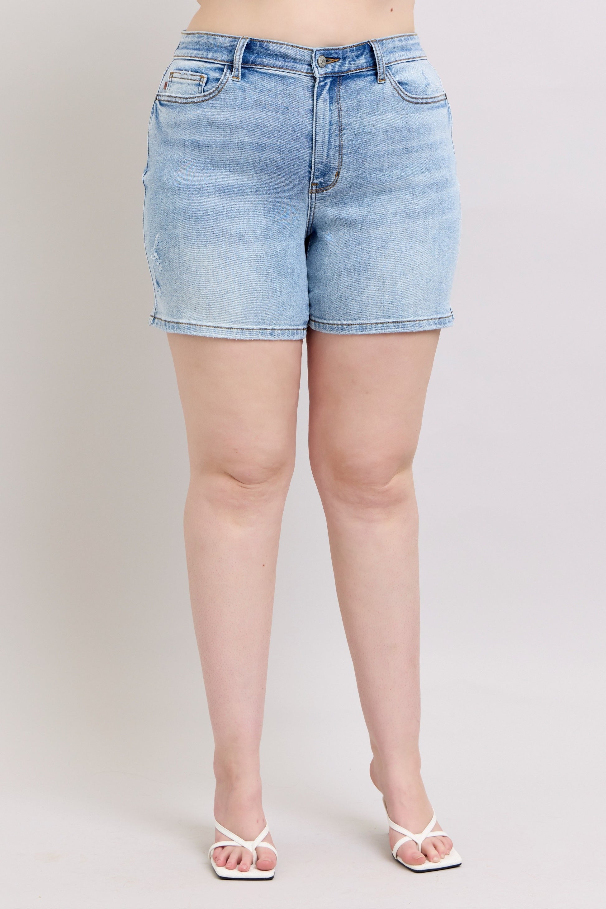 Judy Blue has knocked it out of the park with these amazing shorts! They are mid-rise dad shorts in a gorgeous vintage wash, and they are just waiting to become your warm-weather bestie, girls!